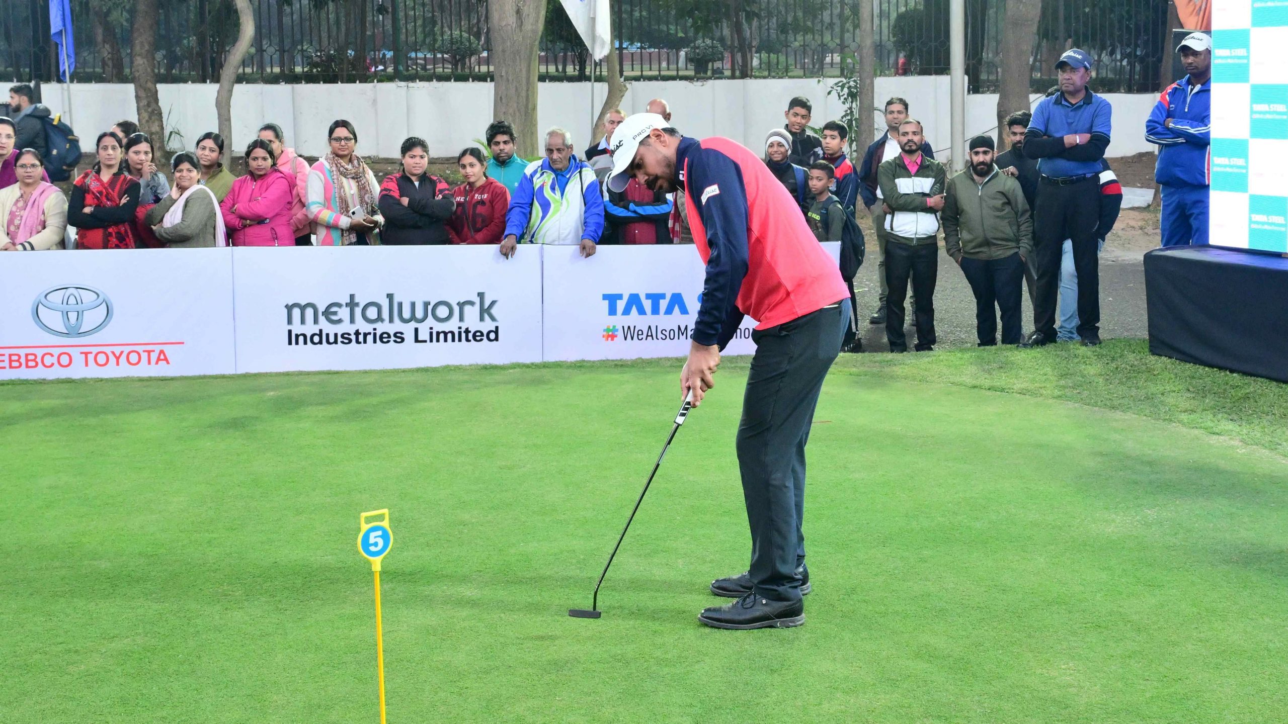 जमशेदपुर. गोलमुरी गोल्फ कोर्स और बेल्डीह गोल्फ कोर्स में गुरुवार से पीजीटीआइ टाटा स्टील गोल्फ टूर चैंपियनशिप की शुरुआत हुई. तीन करोड़ ईनामी राशि वाले इस टूर्नामेंट के पहले दिन के नौ होल का खेल गोलमुरी में और दूसरे नौ होल का खेल बेल्डीह गोल्फ कोर्स में हुआ. दिल्ली के सार्थक छिब्बर, चंडीगढ़ के आदिल बेदी और श्रीलंकाई खिलाड़ी एन ठंगराजा ने छह-अंडर 65 का स्कोर बनाकर टाटा स्टील गोल्फ टूर चैंपियनशिप के पहले राउंड के में संयुक्त बढ़त हासिल की है. तीनों खिलाड़ी संयुक्त रूप से शीर्ष स्थान पर हैं. पांच-अंडर 66 का स्कोर बनाकर चार खिलाड़ी पुणे के रोहन धोले पाटिल, दिल्ली के शमीम खान, बेंगलुरु के एम धर्मा और बांग्लादेश के जमाल होसैन संयुक्त रूप से दूसरे स्थान पर है. दो बार के टाटा स्टील टूर चैंपियनशिप के विजेता उदयन माने, टाटा स्टील पीजीटीआई रैंकिंग में शीर्ष पर काबिज वीर अहलावत और एसएसपी चौरसिया, चार-अंडर 67 का स्कोर बनाकर संयुक्त रूप से आठवें स्थान पर रहे. डिफेंडिंग चैंपियन और दो बार के विजेता गगनजीत भुल्लर ने इवन-पार 71 का स्कोर किया, जिससे वह संयुक्त रूप से 34वें स्थान पर रहे. छिब्बर ने 8वें होल पर लगाया शानदार चिप सार्थक छिब्बर, जो इस सीजन में तीन टॉप-10 फिनिश के साथ पीजीटीआइ की मेरिट लिस्ट में वर्तमान में 27वें स्थान पर हैं, ने पहले छह होल्स में तीन बर्डी के साथ शानदार शुरुआत की. आठवें होल पर एक बोगी के बाद, उन्होंने शानदार चिप शॉट के साथ वापसी की और नौवें होल पर बर्डी बनाने का मौका हासिल किया. बैक-नाइन में तीन और बर्डी बनाई, जिसमें एक शानदार बंकर शॉट से अप-एंड-डाउन भी शामिल था. छिब्बर ने सभी चार पार-5 होल्स पर बर्डी बनाकर अपने खेल को और भी प्रभावशाली बना दिया. शहर के तीन गोल्फर भी दिखा रहे हैं दम जमशेदपुर के तीन पेशेवर खिलाड़ी करण टांक (72), दिव्यजय सिंह (74) और कुरुश हीरजी (78) क्रमशः 45वें, 54वें और 60वें स्थान पर संयुक्त रूप से बने हुए हैं.