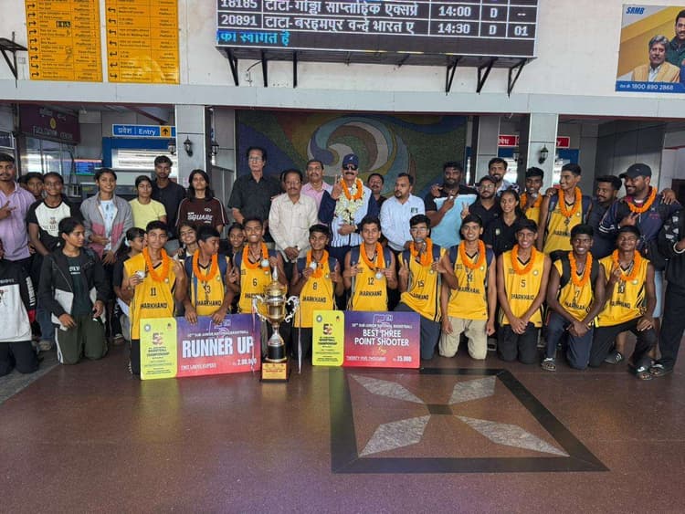 जमशेदपुर. 50वीं सब जूनियर नेशनल बास्केटबॉल चैंपियनशिप में उपविजेता बनने वाली झारखंड की अंडर-14 बास्केटबॉल टीम सोमवार को देहरादून से जमशेदपुर लौट आयी. टाटानगर रेलवे स्टेशन पर खेलप्रेमियों, झारखंड बास्केटबॉल एसोसिएशन के अधिकारियों और पूर्व खिलाड़ियों ने टीम का जोरदार स्वागत किया. टाटानगर रेलवे स्टेशन पर खिलाड़ियों का फूल-माला और ढोल-नगाड़ों के साथ स्वागत हुआ. इस अवसर पर झारखंड बास्केटबॉल एसोसिएशन के सचिव जे पी सिंह, प्रेसिडेंट हरभजन सिंह, प्रदीप मुखर्जी, मुख्तार आलम खान, कोच एमडी आरिफ आफताब, आदर्श कुमार, विशाल दास, अजहर खान, ताहिर हुसैन, मो अकबर खान, मो आफताब आलम मौजूद थे. उल्लेखनीय है कि देहरादून में 4-10 अक्तूबर तक आयोजित 50वीं सब जूनियर नेशनल बास्केटबॉल प्रतियोगिता में झारखंड टीम फाइनल में उत्तर प्रेदश के हाथों हारकर उपविजेता रही. वहीं, पूरे टूर्नामेंट में झारखंड की टीम अपराजित थी. झारखंड के रितेश मुर्मू को बेस्ट थ्री शूटर का खिताब मिला. बास्केटबॉल फेडरेशन ऑफ इंडिया ने झारखंड टीम को 2 लाख रुपये व रितेश को 25 हजार रुपये का नकद पुरस्कार दिया.