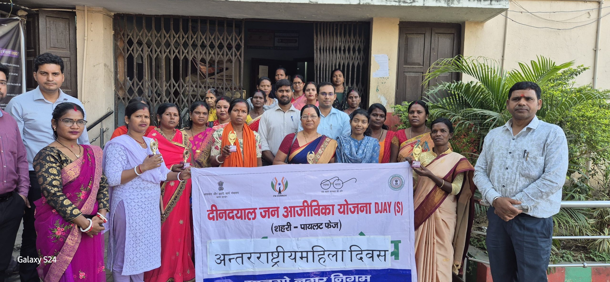 मानगो नगर निगम में अंतरराष्ट्रीय महिला दिवस पर कई कार्यक्रमों का आयोजन किया गया. नगर निगम में कार्यरत सभी महिला कर्मियों व स्वयं सहायता समूहों की महिलाओं ने केक कटिंग कर महिला दिवस मनाया. इस दौरान सांकेतिक रूप से मुख्यमंत्री श्रमिक योजना की महिला लाभुक गीता मुंडा, पीएम स्व निधि योजना के महिला लाभुक जयवंती तिर्की, डेएनयुएलएम के लाभुक कविता शेट्टी, पूर्णिमा गोप, कांति देवी को सहायक नगर आयुक्त अरविंद प्रसाद अग्रवाल और आकिब जावेद ने महिलाओं को मोमेंटो देकर सम्मानित किया. कार्यक्रम के दौरान सहायक नगर आयुक्त ने कहा कि सरकार की योजनाओं से महिलाएं लाभान्वित होकर सशक्त हो रही हैं और आर्थिक रूप से मजबूत हो रही हैं. साथ ही स्वावलंबी हो रही हैं. दीनदयाल अंत्योदय योजना राष्ट्रीय शहरी आजीविका मिशन, पीएम स्व निधि योजना एवं मुख्यमंत्री श्रमिक योजना उनके लिए वरदान साबित हुई हैं. पीएम स्व निधि, मुख्यमंत्री श्रमिक योजना आदि योजनाओं में मानगो नगर निगम में 10 हजार से ज्यादा महिलाएं जुड़ी हुईं हैं. मौके पर नगर प्रबंधक, नगर मिशन प्रबंधक, कार्यालय की महिला कर्मी, सीओ, सीआरपी, स्वयं सहायता समूह की महिलाएं आदि उपस्थित थे.डिस्क्लेमर: यह प्रभात खबर समाचार पत्र की ऑटोमेटेड न्यूज फीड है. इसे प्रभात खबर डॉट कॉम की टीम ने संपादित नहीं किया है
