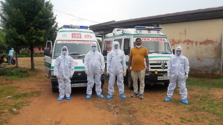 कोरोना संक्रमित मरीजों को कोविड-19 डेडिकेटेड अस्पताल उदलबनी आइसोलेट करने में मौसम भी आड़े आ रहा है. शुक्रवार को आईआरबी कैंप झिलआ से संक्रमित मरीजों को लाने के क्रम में एंबुलेंस फंस गया. कच्ची सड़क की वजह से कीचड़ में एंबुलेंस का चक्का फंस गया. काफी मशक्कत के बाद स्वास्थ्य कर्मियों एवं आईआरबी के जवानों ने एंबुलेंस को कीचड़ से बाहर निकाला. उसके बाद मरीजों को कोविड अस्पताल उदलबनी लाकर आइसोलेट किया गया है. बता दें कि जामताड़ा शहरी क्षेत्र में एक जामताड़ा ब्लॉक का स्टाफ और एक कोर्ट रोड निवासी व्यक्ति संक्रमित पाया गया है.