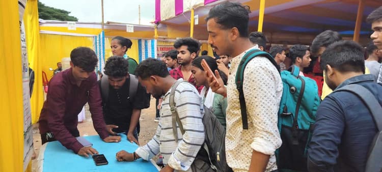 जामताड़ा. श्रम, नियोजन, प्रशिक्षण एवं कौशल विकास विभाग की ओर से जिला अवर नियोजनालय सह मॉडल कैरियर सेंटर जामताड़ा के सौजन्य से यज्ञ मैदान में जिलास्तरीय एक दिवसीय दत्तोपंत ठेंगड़ी रोजगार मेला का आयोजन किया गया. रोजगार मेला का शुभारंभ डीसी कुमुद सहाय व जिला नियोजन पदाधिकारी विनोद कुमार ने संयुक्त रूप से किया. इस अवसर पर डीसी कुमुद सहाय ने कहा कि सभी लोग रोजगार की आशा में आए हैं. नियोजनालय जामताड़ा के सौजन्य से रोजगार मेला का आयोजन किया गया है, जिसका मुख्य उद्देश्य युवाओं को उनके अभिरुचि एवं शैक्षणिक योग्यता के अनुसार नौकरी प्रदान करना है. उन्होंने कहा कि आज के समय में नौकरी व रोजगार की बहुत समस्या है. आज यहां पर 23 कंपनियां आयी है. सभी से अपील की कि अपने अभिरुचि एवं योग्यता के अनुसार स्टॉल में जाएं और नौकरी के लिए आवेदन करें. वहीं जिला नियोजन पदाधिकारी ने बताया कि रोजगार मेले में कुल 23 निजी कंपनियों में अंजनी फेरो एलॉयज लिमिटिड, ग्रीन फ्लेयर, रेक्सा सिक्योरिटी, स्लीपन स्टीलकास्ट प्राइवेट लिमिटेड, सेवा सहयोग सिक्योरिटीज, ए-2 जेड कंसल्टेंसी, ग्रामीण शिक्षा एवं प्रशिक्षण फाउंडेशन, एलआइसी, अरविंद मिल्स लिमिटेड, बिरसा सिक्योरिटी एंड सुपर सर्विस, सनब्राइट ग्रूप, वीएसएस इंटरप्राइजेज, क्वेसकॉर्प लिमिटेड, रायसन्स इंडस्ट्रियल सॉल्यूशन प्रा. लिमिटिड, मेधावी एस्पायर प्रा लिमिटिड, पारस हॉस्पिटल, डेवेलेको प्रा. लि. वाकारू, एनटीटीएफ, कमांडो इंडस्ट्रील, वीआर इंटरप्राइजेज एवं आमधने प्राइवेट लिमिटेड ने भाग लिया. इसमें जिला अंतर्गत नियोजनालय से निबंधित से कुल 575 युवाओं ने अपने योग्यता एवं इच्छानुसार विभिन्न कंपनियों में आवेदन दिया. विभिन्न कंपनियों ने 195 युवाओं का ऑन द स्पॉट चयन किया, जबकि 306 युवाओं को शॉर्टलिस्टेड किया गया. मौके पर आइटीआइ के प्रभारी प्राचार्य दिलीप कुमार, जेएनवी के प्राचार्या डॉ प्रीति श्रीवास्तव, डीपीएम जेएसएलपीएस राहुल कुमार, कुलदीप सिंह, महेश आनंद, संजय कुमार आदि मौजूद थे.