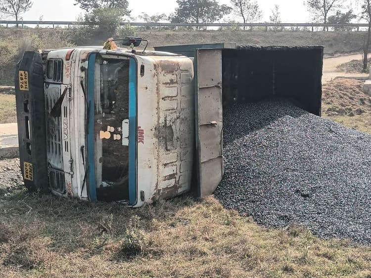जामताड़ा. थाना क्षेत्र के टीकाडीह मोड़ के पास गोविंदपुर-साहिबगंज हाइवे पर एक हाइवा अनियंत्रित होकर पलट गया. घटना में चालक और खलासी किसी तरह बच निकले. स्थानीय लोग चालक की सड़क निर्माण के दौरान नियमों की अनदेखी को इस हादसे का वजह बता रहे हैं. बताया गया कि नारायणपुर से भीठरा के लिए सड़क निर्माण में उपयोग होने वाला गरम माल (गिट्टी) लेकर जा रहे हाइवा टीकाडीह मोड़ के पास अचानक पलट गया. चालक ने बताया कि हाइवा से टीकाडीह मोड़ की ओर उतरते समय एक बाइक सवार को बचाने के लिए गाड़ी को साइड लिया, लेकिन सड़क किनारे फ्लैंक न होने की वजह से भारी वाहन असंतुलित होकर पलट गया. चालक ने आरोप लगाया कि ठेकेदार की मनमानी के कारण यह हादसा हुआ है.
