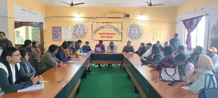 प्रतिनिधि, विद्यासागर. करमाटांड़ प्रखंड सभागार में शनिवार को प्रखंड प्रमुख छोटेलाल कोल की अध्यक्षता में झंडोत्तोलन कार्यक्रम को लेकर बैठक हुई. बैठक में गणतंत्र दिवस को गरिमामय तरीके से मनाने को लेकर विस्तृत रूपरेखा तैयार की गयी. प्रखंड कार्यालय में सुबह 9:30 बजे, थाना परिसर में 10 बजे, कस्तूरबा गांधी बालिका विद्यालय में 10:30 बजे झंडोत्तोलन किया जायेगा. सभी सामुदायिक पुस्तकालय समिति के अध्यक्ष एवं इल्डर क्लब के अध्यक्ष अपने-अपने स्थानों में झंडोत्तोलन का आयोजन करेंगे. अमृत सरोवर स्थल पर भी झंडोत्तोलन करने का निर्णय लिया गया. यह भी तय हुआ कि सामुदायिक पुस्तकालय में वाद-विवाद प्रतियोगिता का आयोजन किया जाएगा, जिससे बच्चों और युवाओं में देशभक्ति की भावना को बढ़ावा मिल सके. प्रखंड प्रमुख ने सभी से आपसी समन्वय के साथ कार्यक्रम को सफल बनाने की अपील की. मौके पर अंचल अधिकारी चोनाराम हेंब्रम, उप प्रमुख मुस्लिम अंसारी, प्रखंड भ्रमण पशु चिकित्सा पदाधिकारी डॉ नंदिता बैरा, बीइइओ सर्किल मरांडी, प्रखंड सहायक संतोष कुमार, कनीय अभियंता कमलेश कुमार, रंजीत दास, कृष्णा मंडल, संतोष मंडल, राजेश कुमार द्विवेदी, हैदर अली, अनिता टुडू, ज्योति कुमारी, श्रीलाल पंडित, मिथिलेश्वर कुमार, संजू कुमार यादव थे.