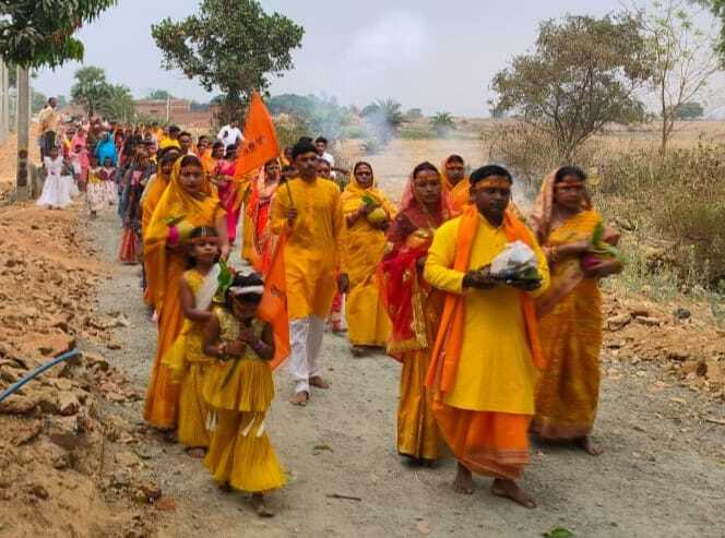 फतेहपुर. शिमलाडंगाल पंचायत अंतर्गत जामबाद गांव में चौबीस प्रहर अखंड हरिनाम संकीर्तन को लेकर सोमवार को भव्य कलश शोभायात्रा निकाली गयी. इस भव्य कलश यात्रा में सैकड़ों युवतियों व महिलाओं ने बढ़-चढ़कर भाग लिया. स्थानीय जलाशय से मुख्य यजमान जयप्रकाश मंडल एवं उनकी धर्मपत्नी समेत सैकड़ों युवती एवं महिलाएं कलश में जल लेकर संकीर्तन स्थल तक पहुंची. शोभा यात्रा के दौरान भक्तजनों के हरिनाम के जय घोष से पूरा वातावरण गुंजायमान हो उठा. आयोजनकर्ता ने बताया कि 18 एवं 19 मार्च की रात्रि 9 बजे से सुप्रसिद्ध कीर्तनिया बादल पाल बांग्ला कीर्तन गान करेंगे. वहीं 20 मार्च को पश्चिम बंगाल के कीर्तनिया संगीता भंडारी रात्रि 9 बजे से हरिनाम संकीर्तन गान करेंगी. वहीं 21 मार्च की सुबह 10 बजे से कुंजविलास गान कीर्तनिया संगीता भंडारी प्रस्तुत करेंगी.