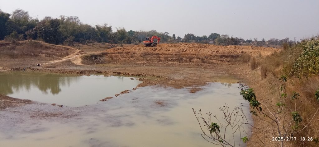 सदर प्रखंड के रानीगंज गांव में भूमि संरक्षण विभाग की ओर से तालाब का जीर्णोद्धार कार्य में तालाब की जगह मेढ़ की मिट्टी काटा जा रहा है.