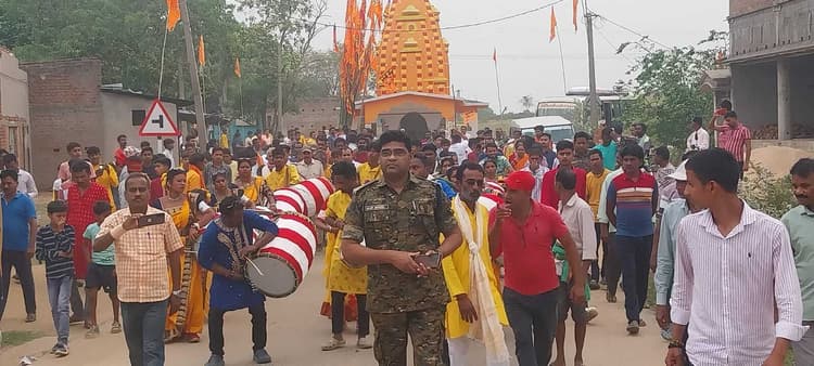 गाजे-बाजे के साथ बिंदापाथर में निकली शोभायात्रा