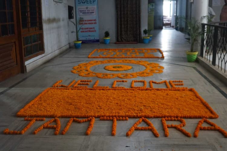 जामताड़ा. लोकसभा निर्वाचन के निमित समाहरणालय सभागार में इएलसी के नोडल पदाधिकारी, सभी विद्यालय/महाविद्यालयों में चयनित कैंपस एम्बेसडर एवं वीएएफ की बैठक हुई. इस अवसर पर डीसी ने कहा कि एक जून को जिले में मतदान होना है. ऐसे में लोकसभा चुनाव में सभी का शत-प्रतिशत भागीदारी सुनिश्चित होना चाहिए. ताकि ज्यादा से ज्यादा मतदान हो सके. जिला के सभी प्लस 2 विद्यालय/महाविद्यालय से 2-2 कैंपस एम्बेसडर (एक छात्र और एक छात्रा) का चयन किया गया है. वर्तमान में कुल 14 विद्यार्थियों को कैंपस एम्बेसडर के रूप में चयनित व नामित किया गया है. उन्होंने कहा कि सभी कैंपस एम्बेसडर अपने-अपने विद्यालय/महाविद्यालयों से दो-दो छात्र छात्राओं को मतदाता जागरुकता अभियान के संचालन लिए एक टीम बना कर परिवार के सदस्यों, अपने पास-पड़ोस के आम मतदाता को चुनाव के संबंध में जानकारी उपलब्ध कराएं और उन्हें मतदान के लिए प्रोत्साहित करें. वहीं समाहरणालय के प्रथम तल पर फूलों से बनाए गए मतदाता जागरुकता का संदेश देते खूबसूरत रंगोली का डीसी ने अवोलकन किया. मौके पर डीडीसी निरंजन कुमार, डीइओ गोपाल कृष्ण झा, डीएसओ कीर्ति बाला लकड़ा, डीएसइ राजेश कुमार पासवान, उप निर्वाचन पदाधिकारी अनिता केरकेट्टा मौजूद थीं.