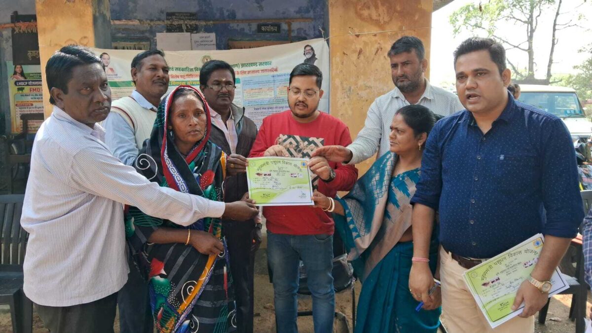 कुंडहित. झारखंड स्थापना दिवस पर शनिवार को पशुपालन कार्यालय में लाभुकों के बीच बत्तख के चूजे का वितरण किया गया.