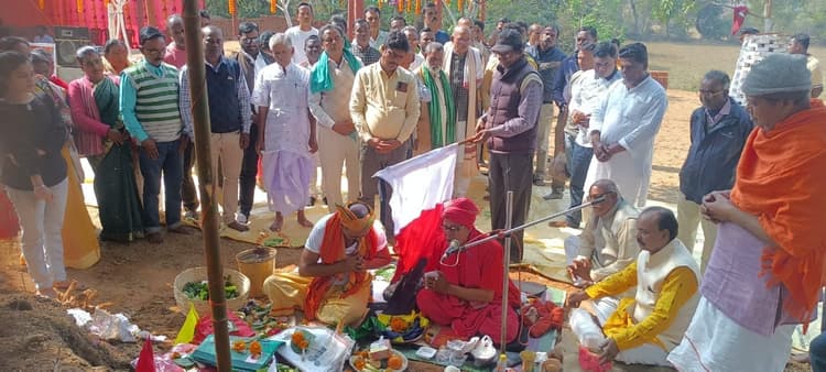 नाला. प्रखंड मुख्यालय स्थित नेताजी स्टेडियम में श्री श्री 1008 लक्ष्मी नारायण महायज्ञ सह सात दिवसीय श्रीमद्भागवतकथा को लेकर मंगलवार को भूमि पूजन कर धर्म ध्वज स्थापित किया गया. इस अवसर पर बतौर मुख्य अतिथि विधानसभा अध्यक्ष रवींद्रनाथ महतो उपस्थित थे. आचार्य सुशील भट्टाचार्य एवं पवन भट्टाचार्य के सानिध्य में वैदिक मंत्रोच्चारण के साथ भूमि पूजन एवं धर्मध्वज स्थापन संपन्न हुआ. जानकारी हो कि पांच मार्च को भव्य कलशयात्रा के साथ छह से 14 मार्च तक महायज्ञ एवं श्रीमद्भागवत कथा का आयोजन होगा. विधानसभा अध्यक्ष ने कहा कि यह एक धार्मिक कार्यक्रम है. इसलिए सभी लोग इसमें शामिल होकर कार्यक्रम को सफल बनाएं. इस प्रकार के कार्यक्रम से मानसिक शांति तो मिलती ही है एक संगठित समाज का निर्माण भी संभव होता है. उन्होंने सभी से अपेक्षित शारीरिक मानसिक एवं आर्थिक सहयोग की अपील की. व्यापक प्रचार-प्रसार करने को कहा. मौके पर कमेटी के राधु मंडल, अजित मुर्मू, उज्ज्वल भट्टाचार्य, भवसिंधु लायक, खिरोद महतो, जयधन हांसदा, वासुदेव हांसदा, समर माजी, जनार्दन भंडारी, महेश कपूर, पूर्ण भट्टाचार्य, सुकमुनी हेंब्रम, निरंजन मंडल, गौरी सिंह, गुपिन सोरेन, राजू दास, बबलू भट्टाचार्य, रंजीत तिवारी, बनमाली मंडल आदि थे.