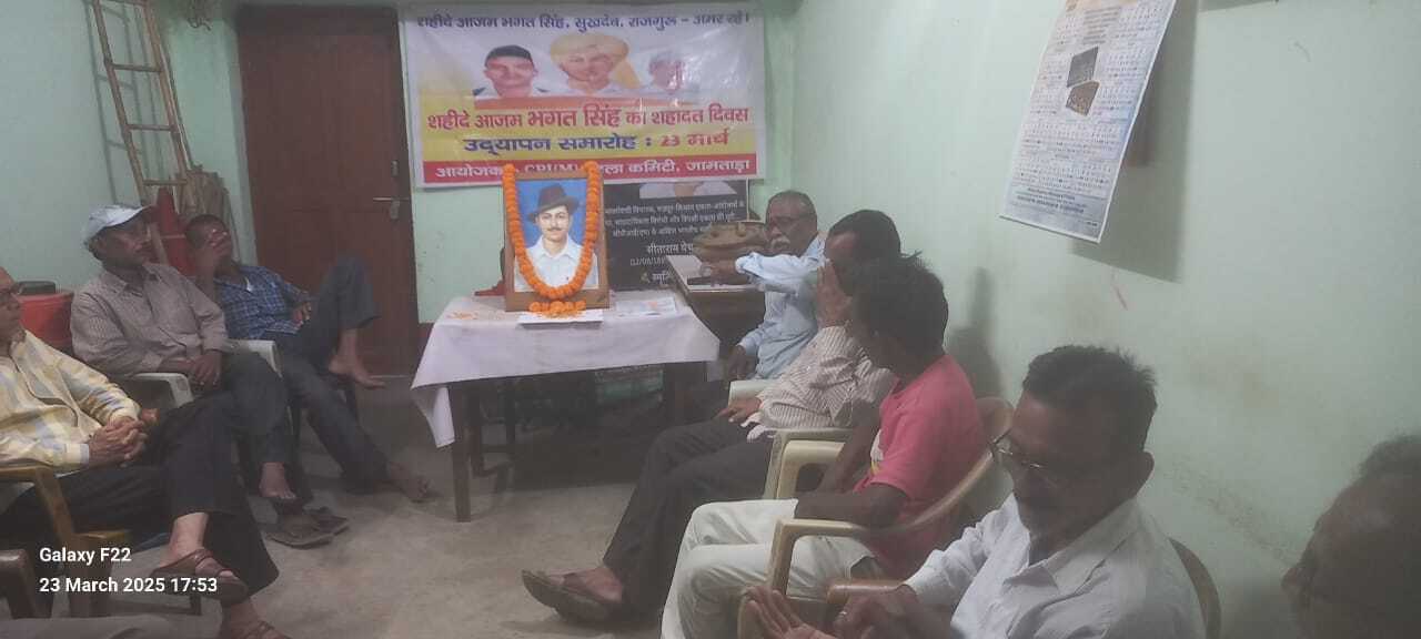 जामताड़ा. सीपीआइएम पार्टी कार्यालय में शहीदे आजम भगत सिंह, राजगुरु, सुखदेव की शहीद दिवस मनाया गया. इस अवसर पर भगत सिंह के चित्र पर पुष्प अर्पित कर नमन किया. जिला कमेटी के सचिव सुजीत माजी की अध्यक्षता में विचार गोष्ठी का आयोजन किया गया. वक्ताओं ने भगत सिंह के बारे में अपनी-अपनी बातों को रखा. कहा कि आज भगत सिंह की विचारधारा काफी प्रासंगिक हो गयी है. जिला समिति के सदस्य चंडीदास पुरी ने कहा कि भगत सिंह ने नेशनल असेंबली में मजदूर विरोधी काला कानून के विरोध में ब्रिटिश सरकार को नींद से जगाने के लिए बम फेंका था. आज देश में मौजूदा केंद्र सरकार देश के मजदूरों का शोषण करने के लिए चार मजदूर विरोधी लेबर कोड लायी है. भगत सिंह ने अपनी पूरी जवानी देश के मजदूर और मेहनतकशों की सच्ची आजादी के लिए कुर्बानी कर दिए थे. आज हिंदुस्तान के कोने-कोने में भगत सिंह के विचारधारा को फैलाने की जरूरत है. देश की मौजूदा पूंजीवादी सरकार के चलते आर्थिक स्थिति संकट में है. देश में नए-नए मजदूर विरोधी कानून बनाए जा रहे हैं. वहीं सुरजीत सिन्हा ने कहा आज साम्राज्यवादी अमेरिका दुनियाभर में अपना वर्चस्व कायम करना चाहता है. इसलिए सीपीआइएम ने निर्णय लिया है कि इस शहीद दिवस को हम साम्राज्यवाद विरोधी दिवस के रूप में मनाएं. मौके पर जिला कमेटी के सदस्य सचिन राणा, विजय राणा, निमाई राय, अशोक भंडारी, बुद्धू मरांडी, अनूप सरखेल, सोना राणा, अनवर अंसारी, हिरुआ कोल, दीप्ति मंडल आदि थे.