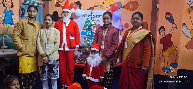 जामताड़ा. जिले में प्रभु यीशु का जन्मोत्सव पर्व क्रिसमस धूमधाम से मनाया गया. इस दौरान जिले भर के गिरजाघरों में ईसाई समुदाय के लोगों की भीड़ जुटी. बुधवार की सुबह बुधुडीह स्थित चर्च, बेवा स्थित चर्च सहित अन्य चर्च में प्रार्थना का दौर शुरू हुआ, जो काफी देर तक चला. प्रार्थना सभा में ईसाई समुदाय के लोग शामिल हुए और पवित्र ग्रंथ बाइबल के साथ प्रभु यीशु की प्रार्थना की. इसके बाद लोगों का गीत संगीत का सिलसिला शुरू हुआ. इस दौरान युवाओं और युवती क्रिसमस के गाने पर एक दूसरे के साथ झूमते नजर आये. सभी लोगों ने एक-दूसरे को मेरी क्रिसमस कहकर बधाई दी. युवाओं की ओर से हर चर्च में खास व्यवस्था की गयी थी. चर्च की सजावट कर रखा था. क्रिसमस को लेकर बाहर से कई अतिथि भी अलग-अलग चर्च में जुटे थे. किंडर किड्स प्ले स्कूल में मना क्रिसमस फोटो – 22 बच्चों के साथ शिक्षका व अन्य जामताड़ा. शहर के किंडर किड्स प्ले स्कूल दुमका रोड जामताड़ा में धूमधाम से क्रिसमस मनाया गया. इस अवसर पर स्कूल में केक काटकर एक दूसरे को बधाई दी गयी. वहीं छोटे- छोटे बच्चों के बीच चॉकलेट बांटा गया. मौके पर प्राचार्या अर्चना चौधरी, शिक्षिका शालू, अंकिता, लख्खी, निशु आदि मौजूद थीं.