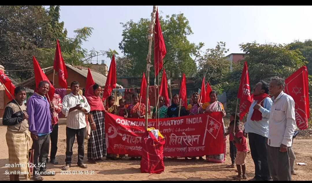 कुंडहित . भाकपा माले कार्यालय में शहीद महेंद्र सिंह का 21वां शहादत दिवस मनाया गया. कार्यक्रम की अध्यक्षता प्रखंड सचिव सोमलाल मिर्धा ने की. वहीं झंडोत्तोलन दखिन घोष ने किया. उपस्थित कार्यकर्ताओं ने शहीद के नाम एक मिनट का मौन रखा. मौके पर जिला सचिव सुनील राणा ने कहा शहीद के सपनों को साकार करने के लिए जोहार झारखंड अभियान गांव-गांव तक ले जाने की जरूरत है. कहा कि जल, जंगल, जमीन, रोजगार, शिक्षा, स्वास्थ्य एवं भ्रष्टाचार, पेसा कानून, पांचवीं अनुसूची, भाजपा सरकार से झारखंड का बकाया पैसा वसूलने तथा स्थानीय नीति जैसे जन मुद्दे को लेकर जन संघर्ष तेज करना समय की मांग है. लोकल ब्रांच कमेटी गठन को लेकर भी चर्चा की गयी. मौके पर लखिंदर मिर्धा, दुर्गादासी सोरेन, मेनका मिर्धा, आशा मिर्धा, मिता कर्मकार, संध्या कर्मकार, ममता राणा, सीता कर्मकार, लखिश्वर हांसदा, बबलू लोहार, बाबूसिंह मुर्मू, बटेश्वर टुडू, मरोल मुर्मू, सनत बास्की, बहामुनी मरांडी, सूरज मिर्धा आदि थे.
