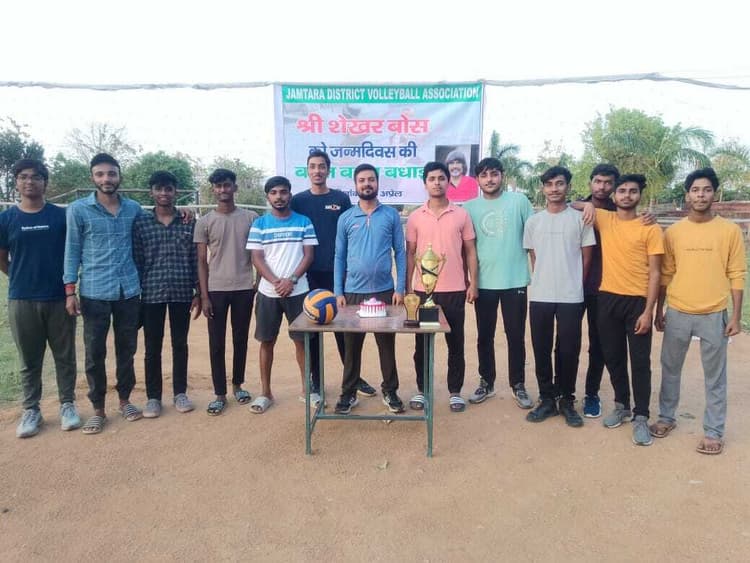 जामताड़ा.जिला वॉलीबॉल संघ की ओर से बुधवार को झारखंड वॉलीबॉल संघ के प्रमुख शेखर बोस का जन्मदिन मनाया गया. इस मौके पर एक दिवसीय वॉलीबाल प्रतियोगिता का आयोजन डीएवी विद्यालय में किया गया. जामताड़ा की कुल चार टीमों ने हिस्सा लिया. फाइनल में डीएवी जामताड़ा ने राजबाड़ी एकादश को 27-20 से हराकर विजेता ट्रॉफी अपने नाम किया. डीएवी के प्राचार्य डॉ विजय कुमार, जिला वॉलीबॉल संघ के अध्यक्ष राजीव रंजन मिश्रा, सचिव विवेक रजक ने वजेता व उपविजेता टीमों को ट्राॅफी व मेडल देकर सम्मानित किया. प्रतियोगिता में रितेश कुमार को उत्कृष्ट खिलाड़ी के रूप में ट्रॉफी देकर सम्मानित किया गया. मौके पर अभिषेक दुबे, राहुल कुमार, राजीव लोचन, कार्तिक, रितेश, रमन, हिमांशु, दीपक आदि थे.