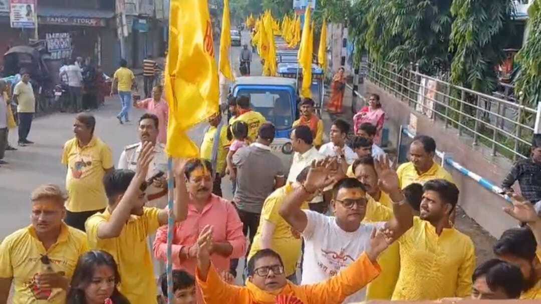 मिहिजाम. श्री श्याम भक्त मंडल मिहिजाम की ओर से श्याम महोत्सव पर नगर में भव्य शोभा यात्रा निकाली गयी. सोमवार की सुबह नगर के हटिया परिसर स्थित मधु मंदिर से शोभा यात्रा शुरू हुई. शोभा यात्रा नगर के मुख्य मार्ग होकर जामाताड़ा स्थित श्याम मंदिर के लिए रवाना हुई. इस दौरान हाथों में निशान लिए भक्त बाबा श्री श्याम के जयकारा लगाते हुए आगे बढ़ रहे थे. शोभा यात्रा में बाबा श्री श्यामजी का दरबार रथ भी सजाया गया था. महिला व पुरुष पीले वस्त्र धारण कर किये हुए थे. जामताड़ा स्थित श्याम मंदिर पहुंचने पर बाबा को निशान अर्पित किया गया. श्रद्धालुओं ने इस दौरान अबीर गुलाल की होली खेली. कार्यक्रम के संचालन में श्री श्याम भक्त मंडल के सदस्य आनंद डागा, चंदन अग्रवाल, रौशन दमानी, अभिषेक दमानी, शुभम अग्रवाल, गौरव दमानी, नमल अग्रवाल, विकास अग्रवाल, सूरज अग्रवाल, श्रवण सावंरिया, प्रदीप अग्रवाल, आयुष दमानी, अभिषेक साव आदि ने हिस्सा लिया.