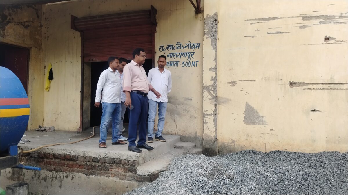 नारायणपुर. डीएसओ क्यूम अंसारी ने शनिवार को नारायणपुर प्रखंड कार्यालय परिसर स्थित एफसीआइ गोदाम का निरीक्षण किया.