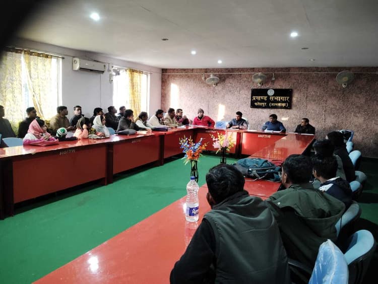 फतेहपुर. बीडीओ प्रेमकुमार दास की अध्यक्षता में फतेहपुर प्रखंड सभागार में मंईयां सम्मान योजना एवं सर्वजन पेंशन योजना को लेकर बैठक हुई. बीडीओ ने मंईयां सम्मान योजना एवं सर्वजन पेंशन योजना के लंबित आवेदन को जल्द से जल्द निष्पादन करने को कहा. एक भी योग्य लाभुक किसी भी स्थिति में नहीं छूटे इसका ख्याल रखने का निर्देश दिया. कहा कि इन कल्याणकारी योजनाओं का भौतिक सत्यापन भी करें. बैठक में इन कल्याणकारी योजनाओं में गैप के आधार के बारे में भी विस्तारपूर्वक जानकारी लेते हुए कई निर्देश दिए. मौके पर बीपीआरओ हरिपद रुईदास, पंचायत सचिव गौर प्रसाद यादव, उपेंद्र यादव, तपन कुमार मंडल, सभी पंचायत के वीएलइ आदि मौजूद थे.