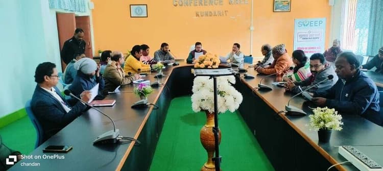कुंडहित. प्रखंड सभागार में गणतंत्र दिवस की तैयारी को लेकर विभिन्न संस्थानों के प्रतिनिधियों की बैठक हुई. बैठक की अध्यक्षता बीडीओ जमाले राजा ने की. कहा कि गणतंत्र दिवस धूमधाम से मनाया जायेगा. विभिन्न संस्थानों में ध्वजारोहण का समय सारणी तय समय के अनुसार किया जायेगा. झंडोत्तोलन कार्यक्रम सुबह 7:25 बजे प्राथमिक विद्यालय बाघाशोला में शुरु होकर 10:00 बजे कस्तूरबा गांधी आवासीय बालिका विद्यालय में समाप्त होगा. कहा सुबह 7:25 बजे प्राथमिक विद्यालय बाघाशोला, प्रोजेक्ट कन्या उच्च विद्यालय में 7:42 बजे, सिंहवाहिनी पल्स टू उच्च विद्यालय में 7:57 बजे, भागवत झा आजाद इंटर कॉलेज में 8:15 बजे, डिग्री महाविद्यालय में 8:18 बजे, पशुपालन कार्यालय में 8:25 बजे, आरइओ कार्यालय में 8.30 बजे, किसान भवन में 8:53 बजे, अंचल सह प्रखंड कार्यालय में 9:00 बजे, कुंडहित पुलिस निरीक्षक कार्यालय में 9:20 बजे, कुंडहित थाने में 9:25 बजे, एनजीओ प्रगति कार्यालय में 9.50 बजे, कस्तूरबा गांधी आवासीय बालिका विद्यालय में 10:00 बजे झंडोत्तोलन होगा. मौके पर सीओ सीताराम महतो मौजूद थे.