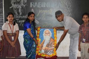 जामताड़ा. सावित्री देवी डीएवी पब्लिक स्कूल में महाकवि रवींद्रनाथ ठाकुर की जयंती मनाई गयी. इस अवसर पर उनके चित्र पर माल्यार्पण किया गया.