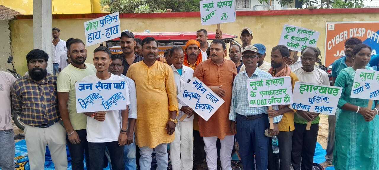 जामताड़ा. गोड्डा में सूर्या हांसदा एनकाउंटर की सीबीआई जांच करने की मांग को लेकर मंगलवार को जन सेवा पार्टी की ओर से जामताड़ा अनुमंडल कार्यालय के समीप धरना दिया गया. धरना-प्रदर्शन का नेतृत्व कर रहे पार्टी के संयोजक राकेश लाल ने बताया कि सूर्या हांसदा का एनकाउंटर नहीं, बल्कि हत्या की गयी है. पुलिस ने पहले उसे गैर कानूनी तरीके से गिरफ्तार किया, फिर फर्जी तरीके से मुठभेड़ में मार दिया. यह मानवाधिकार का हनन है. सरकार से मांग करते हैं कि इस फर्जी एनकाउंटर की सीबीआइ जांच होनी चाहिए. राकेश लाल ने कहा कि गोड्डा जिला पुलिस ने सरासर अन्याय किया है. पुलिस की गिरफ्त से कोई व्यक्ति कैसे हथियार छीन कर भाग सकता है. यह अपने आप में एक सवाल है. पुलिस झूठी कहानी बनकर सूर्या की हत्या को मुठभेड़ का रूप दे रही है, यह गलत है. 25 मामलों में से 14 में सूर्या हांसदा रिहा हो चुके थे. एक भी मामले में न्यायालय ने सूर्या को दोषी नहीं ठहराया. चार बार चुनाव लड़कर समाज की मुख्यधारा में रहने वाला व्यक्ति कुख्यात कैसे हो सकता है. निश्चित रूप से बड़े बड़े माफिया और कंपनी के इशारे पर पुलिस ने इस घटना को अंजाम दिया है. जनसेवा पार्टी झारखंड सरकार और प्रधानमंत्री से इस मामले की सीबीआई जांच करने की मांग करती है. मौके पर जनसेवा पार्टी की महिला मोर्चा की बबली मुर्मू, मिहिजाम नगर अध्यक्ष पवन देव राय, जिला प्रवक्ता छोटेलाल मंडल, दुलाल भंडारी, लुसु मुर्मू, नंदलाल हांसदा, संतोष मरांडी, चंद्रशेखर साव, मनजुलिस बास्की, किशन लाल, सोनू मादव, सूरज, विजय मरांडी, सफीक अंसारी आदि थे.