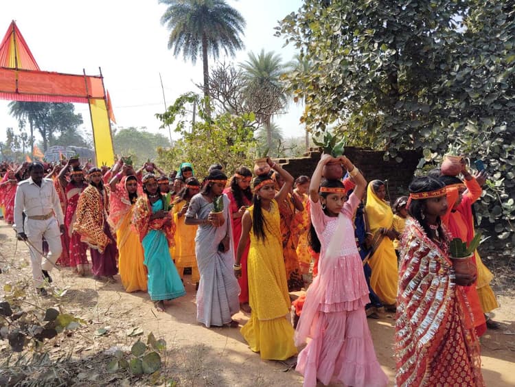 नारायणपुर. नारायणपुर प्रखंड के घाटी बड़बहाल में पांच दिवसीय श्रीश्री 1008 हनुमंत प्राण प्रतिष्ठा महायज्ञ सह राम कथा को लेकर सोमवार को भव्य कलश यात्रा निकाली गयी. इसमें करीब 2100 कन्याएं शामिल हुईं. एक ही रंग के परिधान में पहुंची कन्याएं कलश यात्रा में चार चांद लगा रही थीं. शोभा यात्रा बैंड बाजे पर नाचते झूमते दृश्य लोगों के लिए आकर्षण का केंद्र बना रहा. बोकारो से पहुंचे 25 सदस्यों की बैंड बाजे की टीम की लोकप्रिय धुन ने कलश यात्रा के आरंभ से समापन तक घंटा श्रद्धालुओं को नाचने झूमने पर विवश कर दिया. कलश यात्रा बड़बहाल यज्ञ मैदान से शुरू हुई, जो अम्बाटांड़, रामनगर, मरिचबाद होते हुए हाइवे किनारे कुमारगडिया नदी पहुंची. जहां आचार्य श्री धीरजकांत शास्त्री के नेतृत्व में मंत्रोच्चारण से पूजा अर्चना के उपरांत कलश में जल भरा गया. कलश यात्रा पुन: नावाटाड, रजवारडीह, बड़बहाल, कमलडीह होते हुए यज्ञ मंडप परिसर पहुंची. समिति ने बताया 5 दिनों तक लगातार यज्ञ मंडप में सुबह में हवन व यज्ञशाला की परिक्रमा एवं संध्या सात बजे से रात्रि 10:30 बजे तक बनारस से पहुंचे प्रसिद्ध कथावाचक आचार्य श्री कन्हैया द्विवेदी जी संगीतमय श्रीराम कथा सुनायेंगे. इस दौरान बनारस से पहुंची टीम के द्वारा अलग-अलग देवी देवताओं के आकर्षक झांकी की प्रस्तुति दी जायेगी. कन्या भोज व भंडारा में उमड़ी भीड़ यज्ञ मंडप परिसर में कलश यात्रा में शामिल महिलाएं व कन्याओं को भोजन कराया गया. इसके बाद भंडारे के रूप में हजारों श्रद्धालुओं के बीच महा प्रसाद वितरण किया गया. मौके पर आयोजन समिति के संरक्षक सत्यनारायण तिवारी, अशोक ओझा, उप प्रमुख प्रतिनिधि दल गोविंद रजक, भाजपा नेता वीरेंद्र मंडल, राजेश ओझा, कमलेश तिवारी, भीमसेन, मुख्य जजमान राजेश तिवारी, संजय ओझा, मुकेश तिवारी, भागीरथ रजक, मृत्युंजय ओझा, राघवेंद्र नारायण सिंह, महेश ओझा आदि थे.