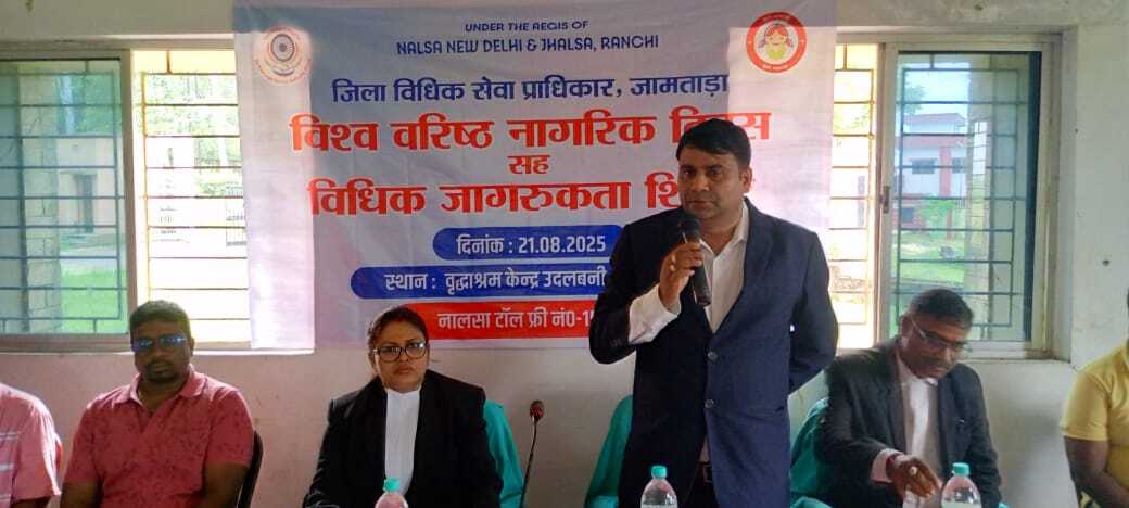 जामताड़ा कोर्ट. वृद्धा आश्रम उदलबनी में विश्व वरिष्ठ नागरिक दिवस पर स्वास्थ्य जांच कैंप लगाया गया. इस दौरान विधिक जागरुकता शिविर का भी आयोजन किया गया. डीएलएसए के सचिव पवन कुमार ने कैंप में सभी बुजुर्गों का ब्लड प्रेशर, शुगर सहित अन्य बीमारियों का टेस्ट कराया. साथ ही साथ उन्हें दवाई भी दिलवायी. डालसा की ओर से निशुल्क विधिक सहायता के बारे में जानकारी दी. सभी बुजुर्गों से पूछताछ के बाद वृद्धावस्था पेंशन, विधवा पेंशन, आयुष्मान कार्ड, आधार कार्ड, सीनियर सिटीजन कार्ड से संबंधित समस्याएं सुनी. कहा कि इन सभी समस्याओं का समाधान जल्द से जल्द किया जायेगा. कहा कि वरिष्ठ नागरिकों की सहायता के लिए हेल्पलाइन नंबर 14567 जारी भी किया गया है. इससे सहायता प्राप्त कर सकते हैं. मौके पर लीगल एड डिफरेंस काउंसिल के उत्तम कुमार, सरिता कुमारी बर्मन, डॉ मनोज कुमार, पीएलवी अमित कुमार मिश्रा, राजेश दत्त, निताई मंडल, श्याम सुंदर टुडू, मिहिर सिंह, आनंद कुमार महतो आदि मौजूद थे.