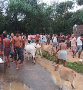 खेत में बंधे मवेशियों को घर लाने गये थे पति-पत्नी, इसी बीच हुई घटना प्रतिनिधि, कुंडहित. कुंडहित थाना क्षेत्र के महुला गांव में वज्रपात की चपेट में आने से एक व्यक्ति की मौत हो गयी. जानकारी के अनुसार, सोमवार दोपहर बाद मौसम अचानक खराब हो गया और आसमान में घने बादल छा गये. बारिश की आशंका को देखते हुए उज्ज्वल घोष (45) और उनकी पत्नी अशोका घोष खेत में बंधे मवेशियों को घर लाने गये थे. इस दौरान हुए वज्रपात की चपेट में आने से पति उज्ज्वल घोष की मौत हो गयी. वहीं पत्नी अशोका घोष मूर्छित हो गयीं, जिसे ग्रामीणों ने आनन-फानन में कुंडहित सामुदायिक स्वास्थ्य केंद्र लाया, जहांं प्राथमिक चिकित्सा के उपरांत बेहतर इलाज के लिए हायर सेंटर रेफर कर दिया गया. उज्ज्वल घोष के मौत की खबर से पूरे गांव में शोक की लहर दौड़ गयी. परिजनों का रो-रो कर बुरा हाल है. घटना की सूचना विधायक प्रतिनिधि शरम मंडल ने बीडीओ सह प्रभारी सीओ जमाले राजा, स्थानीय थाने की पुलिस को दी. कुंडहित पुलिस मौके पर पहुंची और शव को कब्जे में लेकर पंचनामा तैयार किया. पोस्टमार्टम की कार्रवाई की जा रही थी. वज्रपात की इस घटना से मृतक के परिजन शोकाकुल हैं. उल्लेखनीय है कि वज्रपात की दृष्टि से कुंडहित प्रखंड संवेदनशील माना जाता है. हर साल यहां दर्जनों घटनाएं घटती है, जिनमें जान-माल की क्षति होती है. मौके पर पहुंचे विधायक प्रतिनिधि शरम मंडल ने परिजनों को ढांढस बंधाया. सरकार की ओर से सभी सुविधाएं उपलब्ध कराने का आश्वासन दिया.