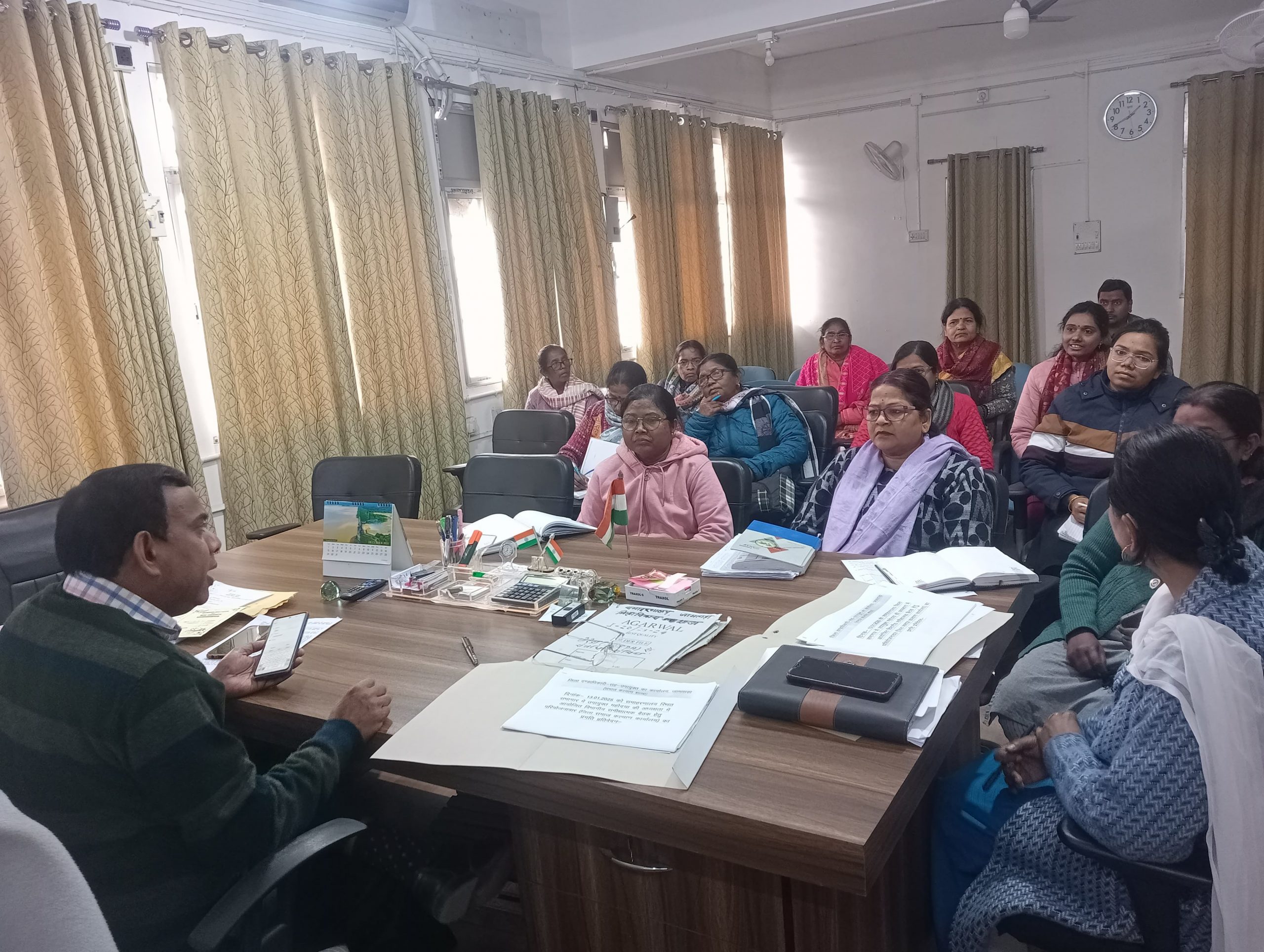 जामताड़ा. डीडीसी निरंजन कुमार ने सोमवार को जिला समाज कल्याण विभाग, सामाजिक सुरक्षा विभाग के पदाधिकारियों के साथ बैठक की. डीडीसी ने कहा कि विभाग की ओर से जितनी भी योजनाएं चलाई जा रही है, उन सभी में लक्षित लक्ष्य के विरुद्ध शत प्रतिशत उपलब्धि प्राप्त करें. वहीं उन्होंने जिले के सभी आंगनबाड़ी केंद्रों में मूलभूत सुविधाएं सुदृढ़ रखने का निर्देश दिया. कहा कि योजनाओं के क्रियान्वयन में कोताही नहीं बरतें. पोषण ट्रैकर ऐप के अनुसार पूरक पोषाहार प्राप्त करने वाले लाभुकों गर्भवती व धात्री महिलाएं, विभिन्न आयु के बच्चों आदि की समीक्षा की. कुल लक्ष्य के विरुद्ध प्रविष्टि किए गए आवेदनों की समीक्षा की गयी. शत प्रतिशत प्रविष्टि सुनिश्चित करने का निर्देश दिया. उन्होंने आंगनबाड़ी केंद्रों में सेविका सहायिका के पदों की जानकारी ली. डीडीसी ने सामाजिक सुरक्षा के तहत झारखंड मंईयां सम्मान योजना, केंद्र एवं राज्य प्रायोजित पेंशन योजना, सर्वजन पेंशन योजना व सामाजिक सुरक्षा पेंशन योजना की समीक्षा कर पेंशनधारियों में राशि भुगतान की समीक्षा की. मौके पर डीएसडब्ल्यूओ कलानाथ मौजूद थे.