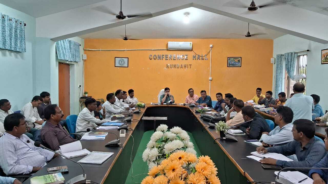 कुंडहित. प्रखंड सभागार में बीडीओ जमाले राजा की अध्यक्षता में मनरेगा सहित विभिन्न विकास योजनाओं की समीक्षा बैठक हुई. बीडीओ ने पुराने लंबित योजनाओं को बंद करने का निर्देश दिया. मनरेगा में महिला मजदूरों की भागीदारी बढ़ाने पर बल दिया. वहीं आम की बागवानी के कार्यों जैसे ट्रेंच कटिंग, घास-फूस की सफाई, खाद डालने आदि समयबद्ध पूरा करने का निर्देश दिया. 15वें वित्त आयोग के अंतर्गत पंचायत उन्नति सूचकांक 0.1 का स्कोर कार्ड बैनर फॉर्मेट में सभी पंचायत भवनों में प्रदर्शित करने की बात कही. अबुआ आवास योजना की समीक्षा करते हुए बीडीओ ने कहा, प्रथम किस्त प्राप्त लाभुकों का जिओ टैगिंग कर द्वितीय किस्त की अनुशंसा शीघ्र की जाए. सभी पंचायत सचिव एवं रोजगार सेवकों को पंचायत भवन खोलकर नियमित रूप से बैठने व मजदूरों को रोजगार उपलब्ध कराने का निर्देश दिया. मौके पर बीपीओ विद्युत मुर्मू, एइ संदीप सोरेन सहित अन्य मौजूद थे.