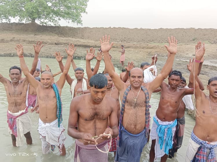 भोलूसामर तालाब में भक्तों ने पवित्र स्नान कर जनेऊ धारण किया.