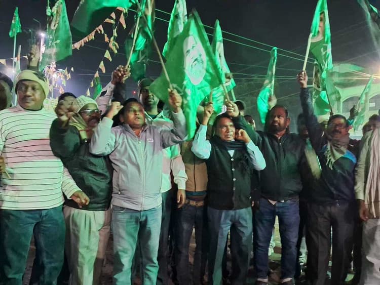 मिहिजाम. घाटशिला उपचुनाव में महागठबंधन प्रत्याशी की शानदार जीत के बाद झामुमो व कांग्रेस सर्मथकों में उत्साह का माहौल हे. झामुमो नगर अध्यक्ष सलील रमण के नेतृत्व में समर्थकों व कार्यकर्ताओं ने जीत की खुशी में आतिशबाजी की. कार्यकर्ताओं ने एक दूसरे को मिठाई खिलाकर जीत की बधाई दी. मौके पर झामुमो उपाध्यक्ष प्रो कैलाश प्रसाद साव, कांग्रेस नगर अध्यक्ष अरुण दास ने कहा कि यह जीत जनता के उम्मीदों और जनहित के मुद्दे पर आधारित है. घाटशिला का उपचुनाव आने वाले समय में राजनीति की दिशा तय करेगी. मौके पर महेंद्र टुडू आदि थे. भाजपाइयों ने बिहार में एनडीए की जीत पर मनाया जश्न मिहिजाम. बिहार विधानसभा चुनाव में एनडीए की ऐतिहासिक जीत से पूरे क्षेत्र में उत्साह का माहौल है. नगर के स्टेशन चौक पर नगर अध्यक्ष लोकेश महतो के नेतृत्व में कार्यकर्ताओं ने विजय उल्लास मनाया. भाजपा कार्यालय से कार्यकर्ता जुलूस के शक्ल में स्टेशन चौक पहुंचे और जमकर आतिशबाजी की. भाजपा कार्यकर्ताओं ने एक-दूसरे को मिठाई खिलाकर जीत की बधाई दी. पूर्व जिलाध्यक्ष सुरेश राय ने कहा कि यह जीत जनता के विश्वास की जीत है. जनता ने बिहार में नीतीश कुमार के नेतृत्व में एनडीए सरकार पर अपना विश्वास जताया है. मौके पर कमल गुप्ता, बालमुकूंद रविदास, मनीष दुबे, शुभम साव, अजित पासवान, गणेश पासवान आदि भाजपा कार्यकर्ता थे.