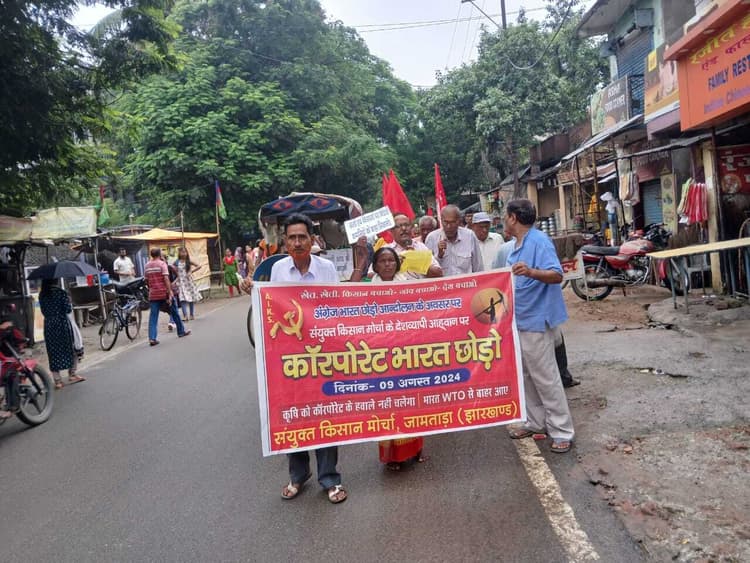 जामताड़ा. अखिल भारतीय किसान सभा किसान काउंसिल के बैनर तले शुक्रवार को किसानों व मजदूरों ने जुलूस निकाला गया. जुलूस सीपीआइएम कार्यालय से निकल कर एसडीओ कार्यालय पहुंचा, जहां सभा में तब्दील हो गया. किसान काउंसिल के नेता सुजीत माजी ने सभा की अध्यक्षता की. सीआइटीयू के लखन लाल मंडल में कहा कि देश की भाजपा नीत नरेंद्र मोदी की सरकार 10 वर्षों में किसानों व मजदूरों के साथ छलावा किया है, जिसके चलते मजदूर व किसान परेशान हैं. हर प्रसाद खां ने सरकार की किसान विरोधी नीतियों की जमकर आलोचना की. मजदूर नेता चंडीदास पुरी ने कहा कि आज ही के दिन 1942 में साम्राज्यवादी ताकत अंग्रेजों को भारत छोड़ो का नारा दिया गया था. आज देश एवं विदेशी कॉर्पोरेट मिलकर भारत के किसान एवं मजदूरों को लूट रहे हैं. मौके पर मीर कासिम, मधु रवाणी, अनूप सरखेल, लोकनाथ राणा, गोविंद पंडित, लखी सोरेन, दुबराज भंडारी, अशोक भंडारी, विजय राणा, सीजल मुर्मू, जुना टुडू, बुद्धू मरांडी, विनोद सोरेन, सोना राणा, रोबिन सोरेन आदि मौजूद थे.