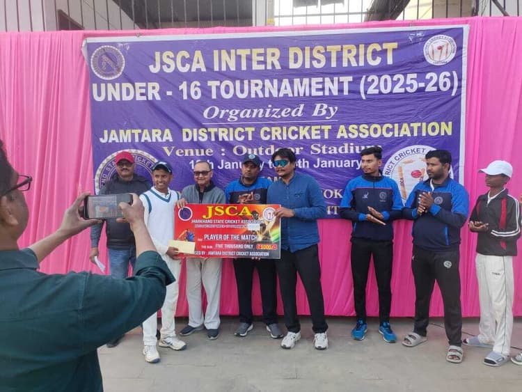 संवाददाता, जामताड़ा. झारखंड राज्य क्रिकेट एसोसिएशन की ओर से आयोजित अंडर-16 अंतर जिला क्रिकेट टूर्नामेंट का लीग मैच आउटडोर स्टेडियम में खेला जा रहा है. इसके दूसरे दिन सोमवार को लातेहार और धनबाद के बीच मुकाबला हुआ. लातेहार की टीम ने पहले बल्लेबाजी करते हुए 42.2 ओवर में सभी विकेट खोकर 229 रन बनाये. इसमें प्रवीण उरांव ने 69 रन, अनुज मुंडा ने 60 रनों का योगदान दिया. वहीं गेंदबाजी में धनबाद की ओर से वीर सिंह ने दो विकेट हासिल किये. जवाबी पारी खेलने उतरी धनबाद की टीम 34 ओवर में ऑल आउट हो गयी, और 162 ही रन बना सकी. धनबाद की ओर से गुरप्रीत सिंह ने 28 रनों की पारी खेली. वहीं लातेहार की ओर से निखिल ने 08 ओवर में 32 रन देकर छह विकेट झटके. अंकेश ने भी तीन विकेट अपने नाम किये. इस प्रकार लातेहार की टीम ने 67 रनों से मैच जीत लिया. बेहतर गेंदबाजी के लिए निखिल को मैन ऑफ द मैच का पुरस्कार दिया गया. मैच में अंपायरिंग अजमल हुसैन व शिवम कुमार ने की. स्कोरिंग दीपक कुमार ने की. मैच रेफरी के रूप में कौशल सिंह, ऑनलाइन लाइसेंस ऑफिसर के रूप में डॉ विद्या भूषण मौजूद थे. अगला मैच मंगलवार को जामताड़ा और लातेहार के बीच खेला जायेगा. यह मुकाबला भी काफी रोमांच भरा होगा.