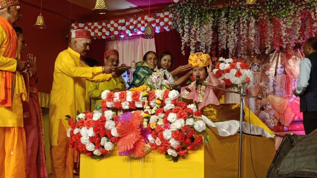 नारायणपुर. दक्षिणीडीह में चल रहे नौ दिवसीय संगीतमय श्री रामकथा के तीसरे दिन मंगलवार को कथावाचिका शालिनी त्रिपाठी ने विवाह प्रसंग सुनाया. भगवान राम व माता सीता के विवाह का वर्णन किया. कहा कि मानव जीवन में विवाह का अत्यंत महत्व है. विवाह से मानव को दो कुलों के उत्तरदायित्व का बोध होता है. कथा में प्रभु श्रीराम के जनकपुर आगमन तथा प्रभु श्रीराम और मां मैथली के पुष्प वाटिका प्रसंग को ऐसे प्रस्तुत किया, जिससे सभी श्रोता मंत्रमुग्ध हो गये. कहा कि जब ठाकुर श्री रामलला जनकपुर पहुंचे, तो उन्होंने सबको अपना-अलग अलग रूप दिखलाया, जिनकी जिस प्रकार की भावना हृदय में थी. उन्हें उसी रूप में दर्शन दिया, जो ऋषि थे उन्हें ब्रह्म रूप में दर्शन दिए, जिन्होंने राजकुमार समझा उन्हें उसी रूप में, जिन्होंने प्रेम से देखा उन्हें प्रेम रूप में, जो ज्ञानी थे उन्हें ज्ञान रूप में दर्शन दिए. उन्होंने हरि नाम की विशेषता बतलायी. हरिनाम के बिना जीवन रूपी नैया पार नहीं लग सकती. सभी को समय निकाल कर प्रतिदिन हरिनाम का सुमिरन करना चाहिए. कहा लोगों के पास आज के युग में मोबाइल चलाने के लिए समय है पर हरिनाम के बारे में कहे तो कहते हैं कि बुढ़ापे में कर लेंगे. इस मृत्यु लोक में एक दिन का ठिकाना नहीं तो फिर हमारी मृत्यु बुढ़े होकर ही होगी इसकी क्या गारंटी है. कहा जब आपके पास समय है भजन कर लें, अन्यथा इसी लोक में भटकते रहेंगे.