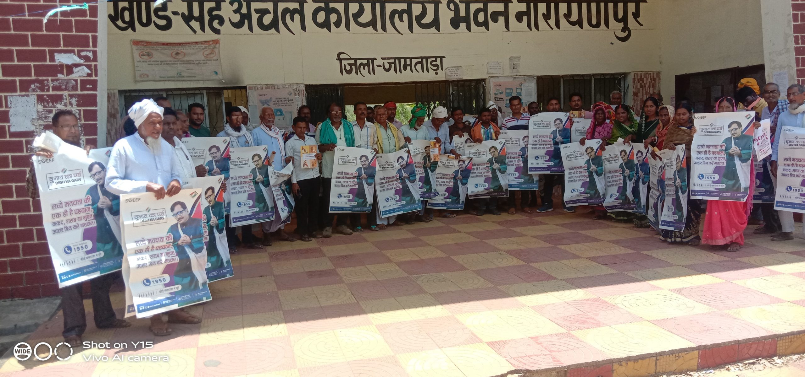 फ़ोटो – 05 मतदाता जागरूकता कार्यक्रम में शामिल ग्राम प्रधान नारायणपुर. अंचल सभागार में शुक्रवार को राजस्व ग्राम प्रधानों की मासिक बैठक हुई. बैठक में संगठन के विस्तार, ग्राम प्रधान और उनके सहयोगियों के अधिकार पर चर्चा की गयी. स्वीप के तहत मतदाता जागरुकता कार्यक्रम का भी आयोजन किया गया. इसमें ग्राम प्रधान व उनके सहयोगियों ने भाग लिया. इस दौरान ग्राम प्रधानों ने एक जून को लोकसभा चुनाव में मतदान करने की शपथ ली. ग्राम प्रधान शिवलाल मुर्मू ने कहा कि हम लोग बढ़-चढ़कर मतदान में हिस्सा लेंगे, अपने आसपास के लोगों को भी मतदान के लिए प्रेरित करेंगे. ताकि मतदान का प्रतिशत अच्छा हो सके. कहा कि हम लोग अपने राजस्व ग्राम के अधीन लोगों को मतदान के लिए जागरूक करेंगे, ताकि लोग मतदान केंद्रों में जाकर 1 जून को लोकसभा चुनाव में मतदान करें. आसपास के नए मतदाताओं को भी मतदान के लिए प्रेरित करेंगे. मौके पर ग्राम प्रधान अशोक ओझा, नरेश सोरेन, अमर मंड़ल, गौरीशंकर तिवारी, नीरा राय मौजूद थे.
