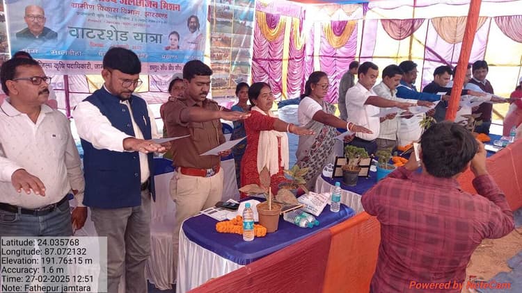 फतेहपुर. बुनुडीह पंचायत अंतर्गत मालडीहा में जलछाजन यात्रा का आयोजन किया गया. इसका शुभारंभ बतौर मुख्य अतिथि जिला परिषद अध्यक्ष राधा रानी सोरेन, डीडीसी निरंजन कुमार, विधायक प्रतिनिधि परेश यादव, प्रमुख अरविंद कुमार मुर्मू, बीडीओ प्रेम कुमार दास, थाना प्रभारी रंजीत प्रसाद गुप्ता ने संयुक्त रूप से किया. इस अवसर पर राधारानी सोरेन ने कहा कि किसानों को सरकार की योजना में अपनी सहभागिता निभानी चाहिए. घर-गांव में योजनाओं का चयन कर अपने आपको लाभान्वित करें. जल संचयन में विभाग की मदद करें. जलछाजन योजना के तहत मेड़बंदी, तालाब निर्माण, डोभा निर्माण, मेड़ पर पौधरोपण कर कृषि के नयी तकनीक अपना कर अपनी आजीविका को सुदृढ़ करें. डीडीसी निरंजन कुमार ने कहा जिले में ज्यादातर आबादी खेती करके ही अपना जीवन यापन करते हैं. ऐसे में किसानों को जल संचयन की जानकारी व उसके लाभ का ज्ञान होना अतिआवश्यक है. तभी आप कम पानी में भी अपने खेती को कर पाएंगे. खेती के लिए मानसून पर भी निर्भर नहीं रहेंगे. उन्होंने कहा कि कार्यक्रम का उद्देश्य मृदा एवं जल संरक्षण को बढ़ावा देना, जनभागीदारी के माध्यम से लोगों में जलछाजन के प्रति जागरुकता लाना और प्राकृतिक संसाधनों जैसे उपजाऊ मिट्टी, भू-गर्भ जल, जंगल और पशुधन का समुचित प्रबंधन करना है. डीडीसी ने जल है, तो कल है का नारा देते हुए जल बचाने की अपील की. कहा कि पानी बचाना मानवता के लिए सबसे बड़ा कार्य है. उन्होंने मनरेगा के तहत जल संरक्षण योजनाओं का लाभ उठाने और जलकुंड निर्माण पर भी जोर दिया. कहा कि मिट्टी हमारे जीवन का आधार है और इसका संरक्षण कृषि उत्पादकता एवं पर्यावरण संतुलन के लिए अत्यंत आवश्यक है. कार्यक्रम के दौरान जिप अध्यक्ष, डीडीसी सहित अन्य ने पौधरोपण किया. मौके पर उपस्थित लोगों को सामूहिक शपथ भी दिलायी गयी. मौके पर कुद्दुस अंसारी सहित अन्य लोग मौजूद थे.