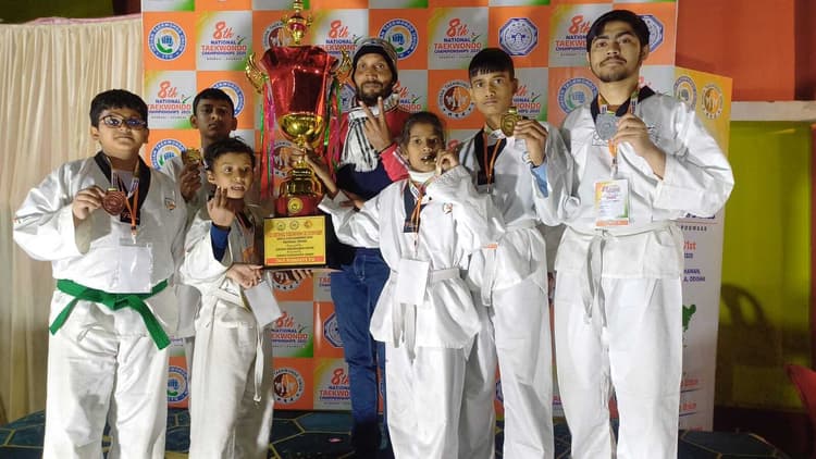 जामताड़ा. ओडिशा के राउलकेला में आयोजित राष्ट्रीय ताइक्वांडो प्रतियोगिता-2025 में जामताड़ा जिले के छह ताइक्वांडो खिलाड़ियों ने पदक प्राप्त किया. जामताड़ा के समृद्ध आर्य को स्वर्ण पदक, देवव्रत मंडल को स्वर्ण पदक, विरा शर्मा को स्वर्ण पदक, अमित शर्मा स्वर्ण पदक प्राप्त हुआ, जबकि सुब्रदीप सरकार को रजत पदक तथा रुद्र प्रताप चौहान को कांस्य पदक प्राप्त हुआ. जिले के खेल प्रेमियों ने इस उपलब्धि पर प्रसन्नता व्यक्त की है. मेंटर सह पूर्व अंतरराष्ट्रीय खिलाड़ी दीपक दुबे को बधाई दी है. बता दें कि ओडिशा में प्रतियोगिता का उद्घाटन बतौर मुख्य अतिथि सुंदरगढ़ के पुलिस अधीक्षक नितेश वाधवानी ने किया था. समापन समारोह में उपस्थित मुख्य अतिथि रघुनाथ पाली के विधायक दुर्गा चरण ताप्ती ने सभी पदक विजेता खिलाड़ियों एवं उनके कोच को सम्मानित किया.
