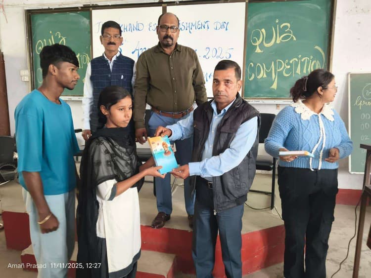 झारखंड स्थापना दिवस की 25वीं वर्षगांठ पर क्विज आयोजित संवाददाता, जामताड़ा. झारखंड स्थापना दिवस की 25वीं वर्षगांठ पर जामताड़ा महाविद्यालय में विविध कार्यक्रमों का शुभारंभ किया गया. कार्यक्रम के प्रथम दिन महाविद्यालय परिसर में क्विज का आयोजन हुआ. इसमें विद्यार्थियों ने उत्साहपूर्वक भाग लिया. कार्यक्रम की अध्यक्षता प्राचार्य प्रो कौशल ने की. मंच संचालन प्रो. रेशमा टोप्पो व डॉ वीरेंद्र कुमार सिंह ने संयुक्त रूप से किया. प्राचार्य ने विद्यार्थियों के समक्ष क्विज की बौद्धिक महत्ता पर प्रकाश डाला. विद्यार्थियों को ऐसी गतिविधियों में भाग लेने के लिए प्रेरित किया. वहीं डॉ वीरेंद्र कुमार सिंह ने विभिन्न विषयों से जुड़े रोचक प्रश्न प्रतिभागियों से पूछे, जिनका उत्तर विद्यार्थियों ने समूह में दिया. प्रतियोगिता में कुल तीन ग्रुपों ने शीर्ष स्थान प्राप्त किये. प्रथम स्थान प्राप्त करने वाले समूह में तापस राउत, विजय मुर्मू, और प्रियंका कुमारी शामिल थे. द्वितीय स्थान आनंद पंडित, चंदन पुजारा, राजेश बास्की और दिनेश टुडू की टीम ने हासिल की. तृतीय स्थान मौसमी कुमारी, सुप्रिया मॉल, विजय हेंब्रम और विपुल राज की टीम को मिला. मौके पर प्राध्यापक प्रो महादेव चंद्र यादव, डॉ जीएस गिरी, डॉ रिजवान, डॉ अनिल कुमार टेटे, डॉ रामसनेही राम, डॉ प्रीति, डॉ वंदना कुसुम इक्का, डॉ शंकर पांडे, डॉ सोनेत किस्कू, प्रो अनीकिता वर्मा, प्रधान सहायक समीर कुमार झा आदि मौजूद थे.