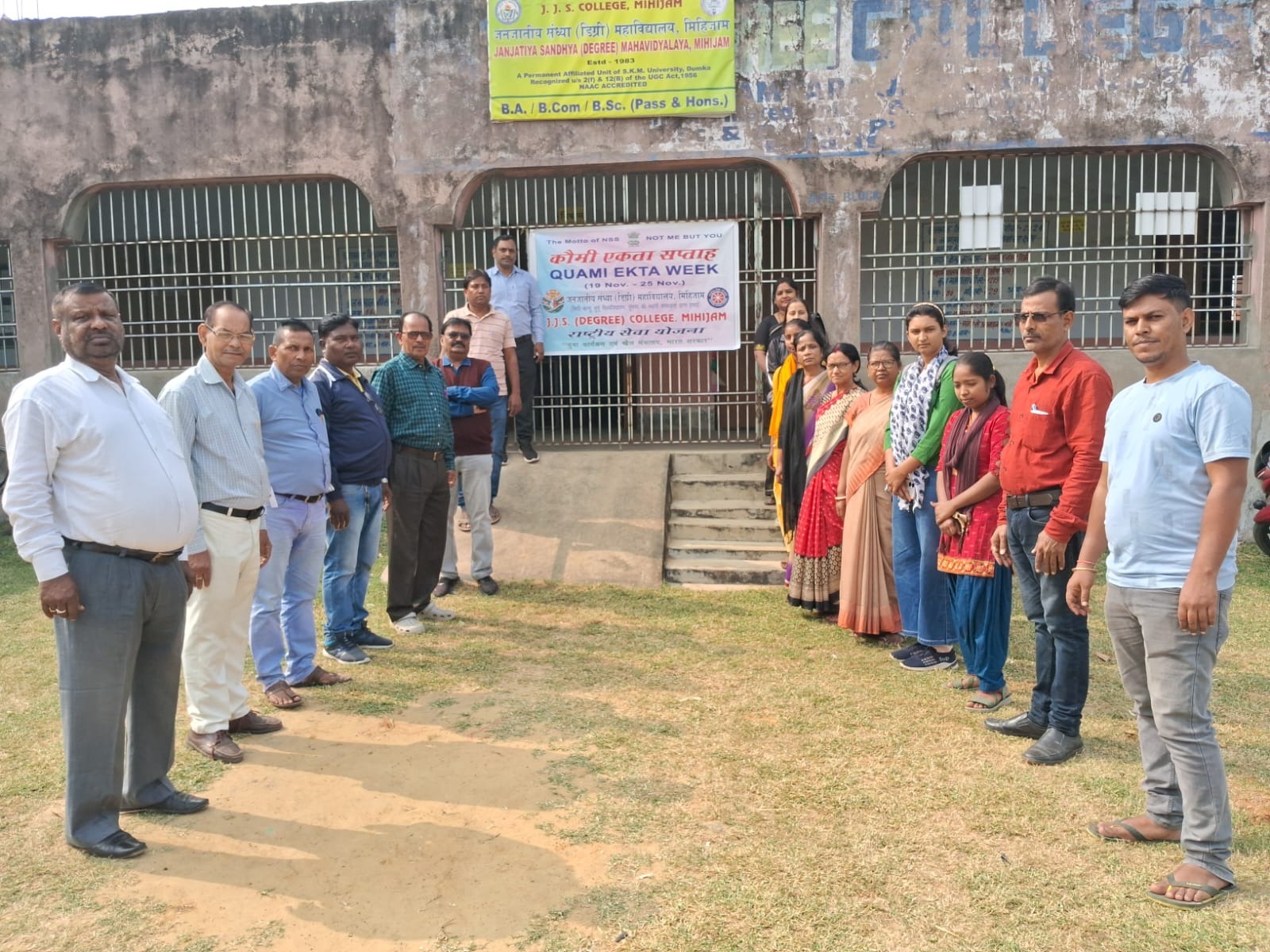 मिहिजाम. जनजातीय संध्या डिग्री महाविद्यालय मिहिजाम में सद्भावना दिवस मनाया गया. इस मौके पर शिक्षकों व छात्रा ने राष्ट्रीय एकता और सद्भावना की शपथ ली. एनएसएस की ओर से आयोजित कार्यक्रम में छात्र छात्राओं को देश को मजबूत व विकसित राष्ट्र बनाने का संदेश दिया गया. मौके पर प्राचार्य प्रो कृष्ण मोहन साह ने कहा कि देश में विभिन्न जाति व धर्म को मानने वाले लोग निवास करते हैं. सभी लोग एक दूसरे के धर्म, स्वभाव व संस्कृति का आदर करते हैं. इस सामाजिक व सांस्कृतिक विरासत को संभालकर रखना है. मौके पर कार्यक्रम पदाधिकारी रंजीत यादव, देवकी पंजियारा, वास्कीनाथ प्रसाद, डॉ राकेश रंजन, शंभू सिंह, अरविंद सिन्हा, सतीष शर्मा, पुष्पा टोप्पो, अमिता सिंह, पूनम कुमारी, दिनेश किस्कू आदि मौजूद थे.
