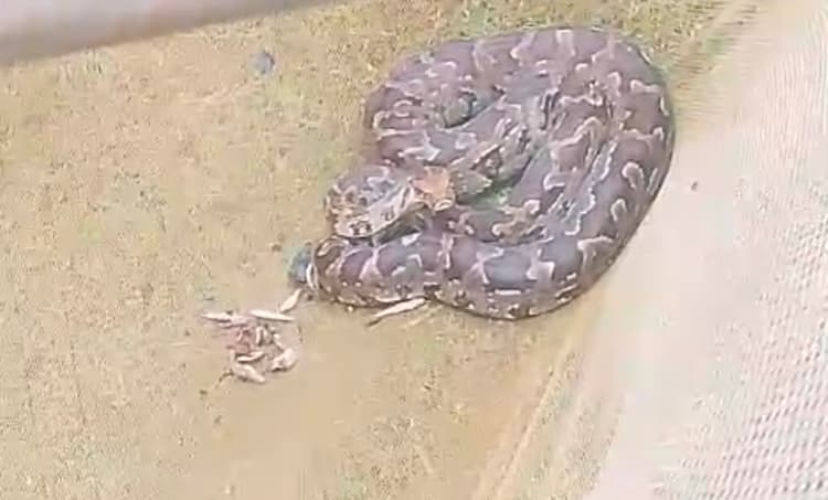 नारायणपुर. वन विभाग की टीम ने शुक्रवार को नयाडीह गांव से 15 फीट लंबा और 12 किलोग्राम वजन का अजगर सांप रेस्क्यू किया. वनरक्षी पुलक कुमार माल ने बताया कि ग्रामीणों की ओर से सूचना दी गयी थी कि एक विशालकाय अजगर सांप गांव में है. टीम के साथ नयाडीह गांव पहुंचे. कड़ी मशक्कत के बाद अजगर सांप को पकड़ा. इसके बाद उसे नारायणपुर वन में सुरक्षित छोड़ दिया. कहा वन और वन जीवन की रक्षा करना हम सभी का दायित्व है. कहीं भी वन्य जीव दिखे उसे मारे नहीं, हमें इसकी सूचना दें.