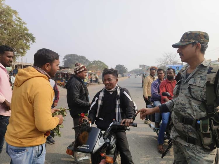 मुरलीपहाड़ी. जमाताड़ा परिवहन विभाग की ओर से सड़क सुरक्षा को लेकर जागरुकता अभियान चलाया गया. इस अभियान के दौरान बिना हेलमेट पहने दोपहिया वाहन चालकों को दंडित करने के बजाय उन्हें गुलाब का फूल देकर यातायात नियमों के प्रति जागरूक किया गया. अभियान का उद्देश्य लोगों को सजा के डर से नहीं, बल्कि समझ और संवेदनशीलता के माध्यम से नियमों का पालन करने के लिए प्रेरित करना था. शुक्रवार को नारायणपुर बस स्टैंड मोड़ पर परिवहन विभाग और नारायणपुर पुलिस की संयुक्त टीम ने वाहन जांच अभियान चलाया. इस दौरान बिना हेलमेट पहने वाहन चला रहे चालकों को रोका गया और उन्हें गुलाब का फूल भेंट करते हुए हेलमेट पहनने की सलाह दी गयी. बताया कि हेलमेट न केवल चालान से बचने का साधन है, बल्कि यह जीवन की सुरक्षा के लिए अत्यंत आवश्यक है. अधिकारियों ने चालकों को सड़क दुर्घटनाओं के आंकड़ों की जानकारी दी. समझाया कि थोड़ी सी लापरवाही जानलेवा साबित हो सकता है. कई चालकों ने हमेशा हेलमेट पहनने का संकल्प लिया.