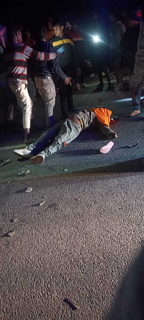हाइवे पर दो बाइकों में टक्कर, एक की मौत, चार घायल