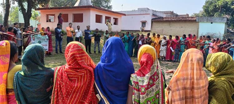 नारायणपुर.झारखंड की 25वीं रजत जयंती पर नारायणपुर में जेएसएलपीएस की ओर से 135 ग्राम संगठनों के लिए विशेष ग्राम सभा हुई. इसमें महिला स्वयं सहायता समूहों की अध्यक्ष, उपाध्यक्ष एवं सचिवों ने भाग लिया. महिलाओं ने लैंगिक समानता, स्वास्थ्य एवं पोषण, बाल विवाह रोकथाम, डायन उन्मूलन व महिलाओं पर हिंसा रोकथाम की शपथ ली. कार्यक्रम के दौरान सर्वश्रेष्ठ तीन स्वयं सहायता समूहों को उत्कृष्ट प्रदर्शन के लिए पुरस्कृत किया गया. सखी मंडल की दीदियों ने महिला सशक्तिकरण को दर्शाती आकर्षक रंगोलियां बनाई. मौके पर पीएम तुमूलतरण, कृष्णा कुमार, सूर्यदेव कुमार, अशोक मुर्मू सहित अन्य थे.