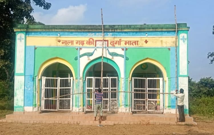 नाला. प्रखंड मुख्यालय स्थित नाला नीचेपाड़ा में लगभग पांच सौ वर्ष पूर्व से भव्यता से राज परिवार की ओर से दुर्गा पूजा की जाती थी. आज भी वह परंपरा कायम है. मालूम हो पश्चिम बंगाल बीरभूम जिले के हेतमपुर स्टेट के राजपरिवार ने जमींनदारी कार्य की देखभाल के लिए ठाकुर बुद्धदेव सिंह को यहां भेजा था. स्व बुद्धदेव सिंह ईमानदार एवं धर्म प्रिय थे और मांं दुर्गा के परम भक्त थे. धार्मिक भावना से ओत-प्रोत रहने के कारण मन में मां दुर्गा की प्रतिमा स्थापित कर पूजा करने की लालसा हुई. उन्हीं की ओर से आज से लगभग पांच सौ साल पूर्व नाला नीचेपाड़ा में मंदिर में प्रतिमा स्थापित कर विधि विधानपूर्वक मां दुर्गा की पूजा-अर्चना प्रारंभ की गयी, जो आज भी उसी भव्यता के साथ उनके वंशजों की ओर से पूजा जारी है. यह गड़ेर मां के नाम से आज भी प्रचलित है. वर्तमान में स्व बुद्धदेव सिंह के वंशज विजय सिंह एवं परिवार के अन्य लोगों की ओर से विधि विधान पूर्वक पूजा-अर्चना की जा रही है. ऐसे तो नित्य पूजा की जाती है, लेकिन दुर्गा पूजा के अवसर पर कलश स्थापना से लेकर विजयादशमी तक उत्सवी माहौल रहता है. मां दुर्गा की आराधना के लिए आवश्यक तैयारी अंतिम चरण में है. पुरानी परंपरा को अक्षुण्ण रखने के लिए आधुनिकता से दूर ग्रामीण परिवेश में भक्तिभाव से मां की आराधना में पूरा परिवार तन मन से जुट जाते हैं. नाला, गोपालपुर, नलहाटी, कुमीरदहा, नतुनडीह, रानीडीह, चकनयापाड़ा सहित आसपास गांव के पुरुष-महिला श्रद्धालु पूजा में भाग लेते हैं. दशमी के दिन मेला का भी आयोजन किया जाता है. इधर पूजा की तैयारी को लेकर मंदिर की साफ-सफाई एवं रंग रोगन का कार्य अंतिम चरण में है.