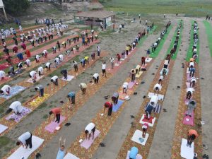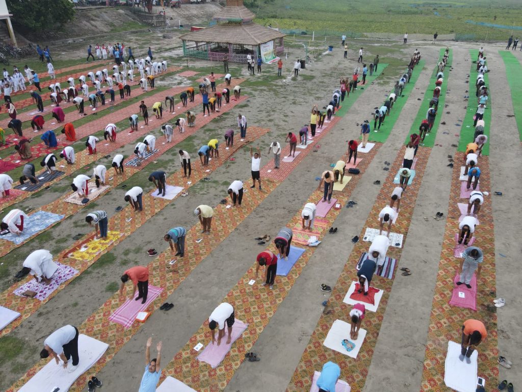 विश्व योग दिवस के मौके पर जिला प्रशासन एवं जिला गंगा समिति द्वारा जिला स्तरीय वृहत योग कार्यक्रम का आयोजन किया गया. कार्यक्रम ओझा टोली घाट में आयोजित किया गया. जहां पतंजलि योगपीठ के प्रशिक्षकों द्वारा योगाभ्यास कराया गया.