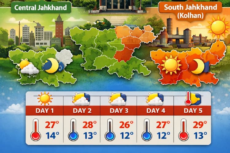 झारखंड की राजधानी रांची, बोकारो, रामगढ़, हजारीबाग, खूंटी और गुमला में अधिकतम तापमान 25 से 29 डिग्री और न्यूनतम तापमान 9 से 13 डिग्री के बीच रहने का अनुमान है. रांची में अगले पांच दिनों तक दिन का तापमान 25 से 27 डिग्री के आसपास रहेगा, जबकि रात का तापमान 10 से 12 डिग्री तक गिर सकता है. रामगढ़ में न्यूनतम तापमान 9 डिग्री तक जाने की संभावना है, जो ठंड बढ़ने का संकेत देता है. सेंट्रल झारखंड में मौसम सामान्य रहेगा, लेकिन सुबह-शाम ठंड और दोपहर में हल्की धूप लोगों को दोहरा असर महसूस कराएगी.