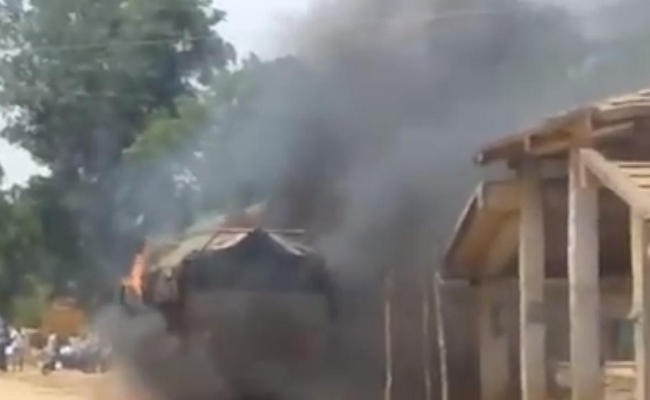 VIDEO : जब खूंटी में सीमेंट लदे खड़े ट्रक में लग गयी आग, होने लगे धमाके