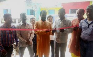फीता काटकर उद्घाटन करते नगर अध्यक्ष और भाजपा जिलाध्यक्ष