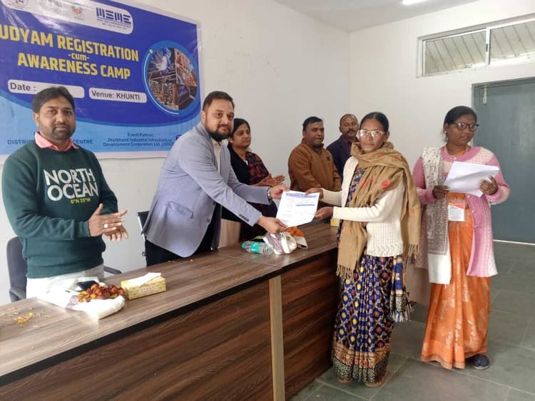 कर्रा. कर्रा प्रखंड में बुधवार को जिला उद्योग केंद्र के द्वारा उद्यम रजिस्ट्रेशन कैंप का आयोजन किया गया. जिसमें 20 उद्यमियों का रजिस्ट्रेशन किया गया. इस अवसर पर उन्हें पीएमएफएमई, पीएमइजीपी सहित अन्य के संबंध में जानकारी दी गयी. उन्हें रजिस्ट्रेशन करने के बाद उद्यमी बनने और स्वरोजगार के क्षेत्र में आगे बढ़ने के लिए प्रेरित किया गया. इससे पहले शिविर का उद्घाटन नाबार्ड के डीडीएम ने किया. मौके पर जिला उद्योग केंद्र के मैनेजर अभिनव राज, चितरंजन कुमार, संतोष कुमार सोनी, पंकज कुमार शर्मा, आशीष वर्मा सहित अन्य उपस्थित थे.