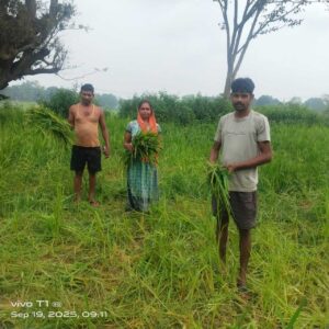 हाथियों के झुंड ने गड़ाहातू गांव में आधा दर्जन से अधिक किसानों के खेत में लगे धान की फसल का रौंद दिया.