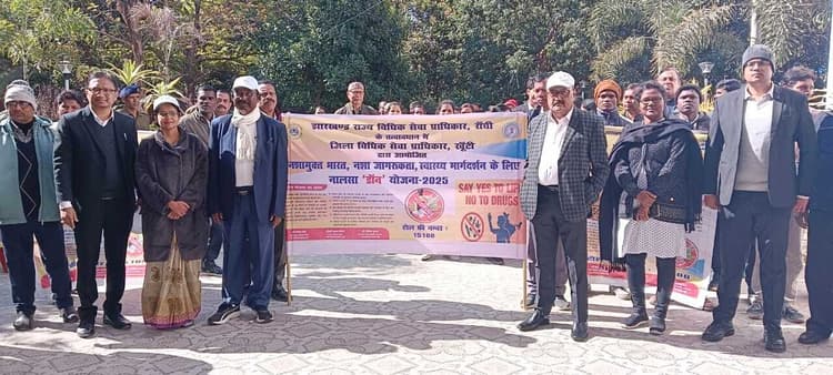 खूंटी. नालसा डॉन योजना 2005 के तहत सोमवार को व्यवहार न्यायालय परिसर से नशा मुक्ति पर पदयात्रा सह जागरूकता अभियान का आयोजन किया गया. नशा मुक्ति पदयात्रा व्यवहार न्यायालय से भगत सिंह चौक तक गयी. इस अवसर पर प्रधान जिला एवं सत्र न्यायाधीश सह डालसा अध्यक्ष रसिकेस कुमार ने कहा कि नालसा के आदेश पर नशीली दवाओं के दुरुपयोग और तस्करी के खिलाफ नशा मुक्ति अभियान चलाया जा रहा है. यह अभियान दुनिया को नशीली दवाओं से मुक्त करने के लिए चलाया जा रहा है. उन्होंने कहा कि नशा नाश का जड़ है. युवा वर्ग इससे दूर रहे और दूसरों को भी इससे बचायें. युवा देश और समाज की सेवा में अपना योगदान करें न कि नशापान में अपना और परिवार का जीवन नष्ट करें. अभियान के तहत सोमवार को पीएलवी अपने-अपने प्रखंड, पंचायत और ग्राम स्तर पर नशा मुक्ति के विरुद्ध जागरूकता रैली निकाली. डालसा सचिव कमलेश बेहरा ने बताया कि यह अभियान जिले के विभिन्न स्थानों में एक सप्ताह तक चलाया जायेगा. इस अवसर पर व्यवहार न्यायालय के न्यायिक पदाधिकारी, कर्मी, एलएडीसी एस, पैनल अधिवक्ता, डालसा के पीएलवी, सदर अस्पताल के स्वास्थ्यकर्मी और पुलिसकर्मी आदि शामिल रहे.